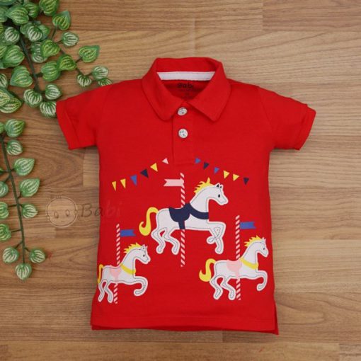 Áo thun cổ trụ in hình chú ngựa may mắn