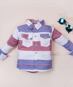 Áo sơ mi caro tay dài cho bé trai phối túi cực tây – Họa tiết caro độc đáo với cách phối màu đẹp mắt, giúp bé thật nổi bật và nam tính.