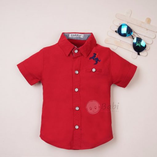 Áo sơ mi ngắn tay phối cổ caro sành điệu cho bé trai